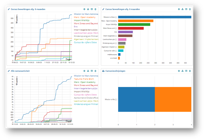 Rapportage en Learning Analytics Inzichten: Met onze rapportage- en learning analytics-functionaliteiten kun je een cursusoverstijgend dashboard inrichten en direct vanuit daar naar de activiteit gaan van de klas of individuele student. Slimme meters laten zien hoe studenten ten opzichte van elkaar scoren. Ook studenten kunnen dit geanonimiseerd inzien, om te begrijpen hoe zij met oefeningen en toetsen presteren ten opzichte van het gemiddelde. Of je nu kiest voor formatief werken of diepgaande summatieve beoordelingen, alles is mogelijk met Moodle Premium bij OpenEdu.